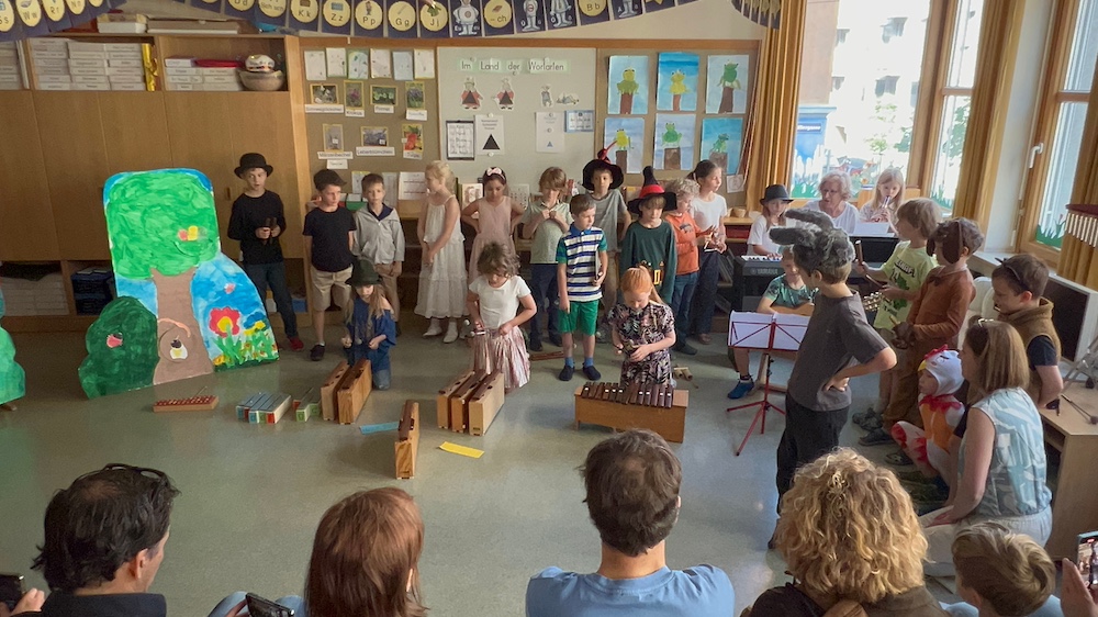 In der letzten Schulwoche luden die Kinder der jetzigen 2b ihre Eltern zur Aufführung „Die Wiener Stadtmusikanten“ ein.